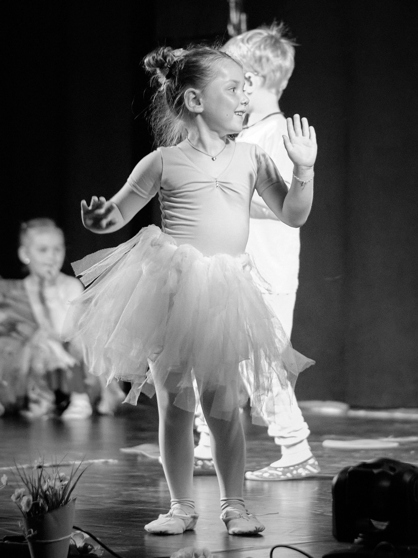 Die Tanzzwerge bieten bereits den Kleinsten im Alter von 2 - 3 Jahre den Einstieg in die faszinierende und vielseitige Welt des Tanzes. Gemeinsam mit den Eltern, in behütetem Umfeld, machen wir auf verspielte Weise erste Erfahrungen mit den grundlegenden Tanzformen - mal schnell, mal langsam, klein und groß, mal sanft, mal wild und hoch und tief. Wir erforschen, was unser Körper alles kann und schon bald können wir tribbeln wie die Mäuse, springen wie die Pferde, schleichen wie die Katzen oder vielleicht sogar auf den Zehenspitzen tanzen und ein Chasse machen. Die Tanzzwerge sollen die Möglichkeit bekommen, sich ohne Erwartungen auszuprobieren und zu erfahren, wie sich tanzen anfühlt. Hier sollen sie die grundlegendste und wichtigste Voraussetzung für das Tanzen lernen - nämlich die Freude daran!